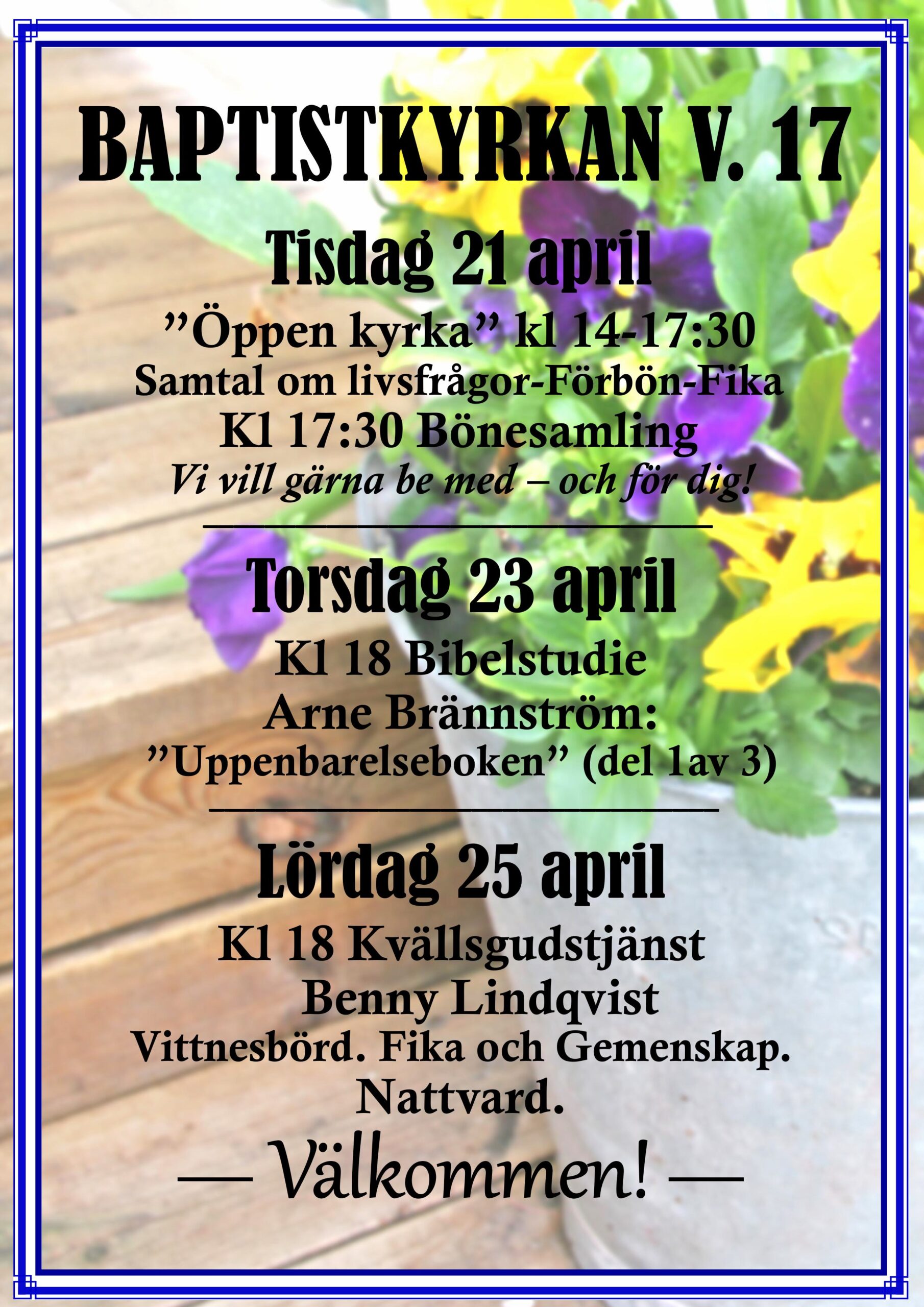 Välkommen till en varm församling som är öppen för alla. Kom som du är och bli en del av vår gemenskap där vi tillsammans får lära känna Jesus!